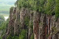Der Ouimet Canyon Provincial Park ist ein „Nature Reserve Class Park“ im Norden der kanadischen Provinz Ontario. Der Ouimet Canyon, nach dem der 7,77 km² große Park benannt ist, und der den Kern des Parks darstellt, ist eine Schlucht bei Dorion, einem Township im Thunder Bay District. Die rund eine Milliarde Jahre zurückreichende Schlucht,[1] die von den Schmelzwässern gegen Ende der letzten Kaltzeit tief eingeschnitten wurde,[2] ist etwa 100 m tief und 150 breit, erstreckt sich dabei über etwa zwei Kilometer. Ihre Gestalt entstand bereits während der letzten Kaltzeiten, als die Schlucht noch unter Gletschern lag. Tatsächlich finden sich ähnliche Spuren, die sich über 70 km weiter nordwärts feststellen lassen, wie etwa am Cavern Lake, am Wolf Lake und bis hinauf zum Nipigonsee. Die Erosion der Felswände sorgt dafür, dass die Schlucht selbst stark von Geröll angefüllt wurde; wie tief der eigentliche Grund des von Gletscherwasser geformten Tunnels unter dem Eis war, ist unklar.[3]