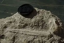 Im Jahr 1922 stellte Léonce Joleaud eine Reihe von Wirbeltierfossilien vor, darunter unter anderem auch das Krokodil Dyrosaurus und verschiedene fossile Haiformen. Seiner Einschätzung nach gehörten die Ablagerungen des Ouled-Abdoun-Beckens einem zeitlich weiter umfassenden geologischen Rahmen an, der von der ausgehenden Kreide bis zum Eozän reichte. Damit stand er im Widerspruch zu Brives, schloss sich aber der Meinung von Louis Gentil an. Dieser hatte im gleichen Jahr eine vergleichbare Alterseinschätzung abgegeben und sich dabei auf biostratigraphisch aussagekräftige Fossilien und deren Verbreitung in den Ablagerungen berufen.[175][176] Weitere frühe Funde gehen auf Charles Depéret und P. Russo aus der Mitte der 1920er Jahre zurück. Sie vermeldeten Reste von Haien, Krokodilen und Mosasauriern aus der Region um Melgou im nordöstlichen Teil des Ouled-Abdoun-Beckens.[2][34]
