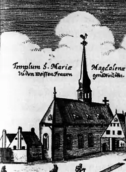 Die Kirche wurde Johannes dem Täufer und der heiligen Antonina mit ihren sechs Gefährtinnen geweiht. Sie war im Mittelalter die bevorzugte Kirche der Weberzunft und wurde auch die Grabstätte des Arnold von Siegen. Im Jahr 1943 wurde sie fast völlig zerstört. Sie wurde erst zwischen den Jahren 1961/63 durch den Architekten Karl Band wieder aufgebaut.[3]