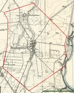 Der Ort wurde 1693 gegründet.[1] Um 1780 war Budupöhnen, das auch Szillischken genannt wurde, ein Schatull-kölmisches Dorf.[2]Budupönen war ein recht häufiger Ortsname in Ostpreußen, so gab es im 1815 gebildeten Kreis Pillkallen allein drei Orte dieses Namens, die durch Beifügung des Namens des evangelischen Kirchspiels voneinander unterschieden wurden. Dieser Ort gehörte zum Kirchspiel Schirwindt. 1874 wurde die Landgemeinde Budupönen in den neu gebildeten AmtsbezirkDoristhal im Kreis Pillkallen eingegliedert.[3] 1938 wurde Budupönen, Ksp Schirwindt, in Moosbach umbenannt.