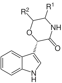 Die Oxazinine sind eine Gruppe polycyclischer mariner Toxine, die in der Natur bisher nur in Mittelmeer-Miesmuscheln (Mytilus galloprovincialis) und Dinoflagellaten gefunden wurden. Alle Mitglieder besitzen einen zentralen, Morpholin-ähnlichen Ring (3-Oxo-1,4-oxazinan), der mit einem Indol- sowie einem Phenol- oder p-Kresol-Substituenten verbunden ist. Da die Oxazinine den Muscheln offenbar als cytotoxische Abwehrstoffe dienen,[1] werden sie auf ihre Verwendung als Arzneistoffe (Antibiotika oder Zytostatika) untersucht.