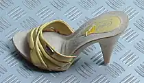 - höhere Absätze (so bei der Pantolette im Gegensatz zu dem für den Mann gedachten Pantoffel),