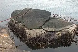 Am Strand befinden sich die bekannten Rinkusteinar, zwei Felsen, die sich mit den Wellen bewegen. Um diesen Effekt zu verdeutlichen, ist ein Seil zum Ufer gespannt, das sich so ständig strafft und wieder locker lässt.