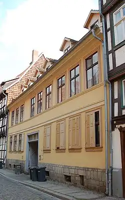 Das straßenseitige Wohnhaus entstand in seinem Kern vermutlich in der zweiten Hälfte des 17. Jahrhunderts. Das Fachwerkhaus verfügt zur Straße über eine verputzte Fassade im Stil des Spätklassizismus. Im Haus befindet sich eine große Durchfahrt, von der zwei Keller abgehen, die mit geschmiedeten Türen versehen sind.