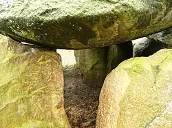 Das Grab besteht aus großen Findlingen, zwölf Tragsteinen und vier Decksteinen. Zehn Trägersteine und drei große Decksteine bilden die Kammer, zwei Trägersteine und ein kleinerer Deckstein bilden den Gang auf der südlichen Seite. Einer der Trägersteine weist zwei behauene Seiten auf. Er wurde offenbar neuzeitlich eingefügt, um einen leicht abgesunkenen Trägerstein zu ersetzen.