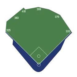 | Spielfläche | Left Field: 325 ft (99 m) Left-Center: 386 ft (117 m) Deep Left-Center Field: 410 ft (125 m) Center Field: 399 ft (122 m) Right-Center: 375 ft (114 m) Right Field: 320 ft (98 m) Backstop: 51 ft (16 m)