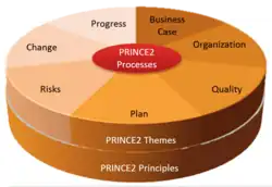 | Anpassen an das Projekt | PRINCE2 wird für jedes Unternehmen und teilweise sogar für jedes Projekt angepasst, um auf die speziellen Anforderungen eines Projekts hinsichtlich seiner Umgebung, des Umfangs, der Komplexität, der Wichtigkeit, der Leistungsfähigkeit und des Risikos eingehen zu können.[1] |