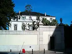 Der Palácio de São Bento ist seit 1834 Sitz des portugiesischen Parlaments (Assembleia da República).[1] Man gelangt über eine breite Außentreppe hinauf zum Palast. Die 1941 errichtete Treppe ist beidseitig flankiert von marmornen Löwen. Am Haupteingang unterhalb der neoklassizistischen Säulenfront befinden sich vier weibliche allegorische Statuen, welche die Tugenden Mäßigung, Gerechtigkeit, Stärke und Vernunft symbolisieren. Der sechs Meter hohe und 30 Meter lange Giebel über dem Vorbau wurde vom Bildhauer Simões de Almeida verziert.