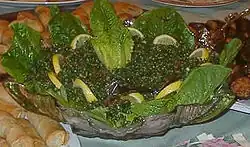 Ein Tafelsalat der mediterranen Art, welcher in der Levante serviert wird, ist Tabbouleh. Der Salat besteht aus Stücken Petersilie, Bulgur, geschnittenen Tomaten, Gurken und wird mit Zitronensaft und Essig sautiert. Im Jahr 2006 wurde der größte Tabbouleh-Teller der Welt von palästinensischen Köchen in der Stadt Ramallah, welche im Westjordanland liegt, vorbereitet.[24]