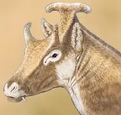 - ↑ a b Shi-Qi Wang, Jie Ye, Jin Meng, Chunxiao Li, Loïc Costeur, Bastien Mennecart, Chi Zhang, Ji Zhang, Manuela Aiglstorfer, Yang Wang, Yan Wu, Wen-Yu Wu und Tao Deng: Sexual selection promotes giraffoid head-neck evolution and ecological adaptation. Science 376 (6597), 2022, S. eabl8316, doi:10.1126/science.abl8316