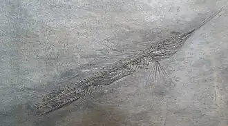 Fossil von Palaeorhynchus glaronensis im Paläontologischen Museum Zürich | ||||||||||||