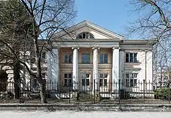 - ↑ Stanisław Śleszyńki war Hauptmann eines Pionierbataillons. Das Ehepaar Śleszyńki legte in unmittelbarer Nachbarschaft zum Palais auch einen Vergnügungspark an, der wegen der Hügeligkeit des Geländes „Schweizer Tal“ (polnisch: Dolina Szwajcarska) genannt wurde.
