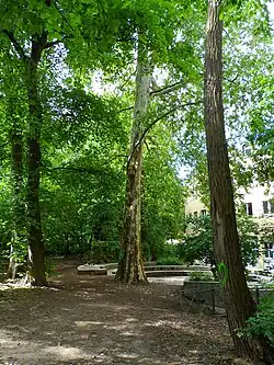 Das Haus ist von einem großen Park umgeben und wurde auf den Gründen eines ehemaligen Meierhofes erbaut. Der Erzherzog ließ das Grundstück 1834 von seiner Dienstbarkeit befreien und verstarb im Palais Meran am 11. Mai 1859.[2] Benannt wurde es nach seinem Sohn Graf Franz von Meran, der diesen Titel 1844 erhalten hatte.
