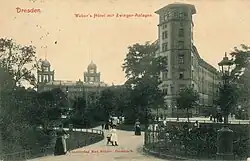 Das Palasthotel Weber entstand 1911 nach einem Entwurf der Architekten Lossow & Kühne durch Umbau des sogenannten „Turmhauses“ auf dem Eckgrundstück Ostra-Allee/Postplatz in Dresden.[1] Das im Zweiten Weltkrieg beschädigte und ausgebrannte Gebäude wurde zwar als Büro- und Geschäftsgebäude hergerichtet, aber schließlich doch 1968 abgebrochen.