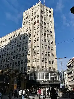 Das Vorgängergebäude stammte aus dem 19. Jahrhundert. Das Kaffeehaus Kod Albanije (1914), später Restaurant Albanija (1938), mit der markanten öffentlichen Uhr auf dem Vorplatz war ein beliebter Treffpunkt der Belgrader.