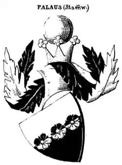Der Heraldiker Otto Titan von Hefner rechnete die Familie zu den ältesten Geschlechtern Tirols. Der Überlieferung nach waren die Pal(l)aus im Gefolge des heiligen Vigilius von Rom in die Grafschaft Tirol gekommen. Der Familienname soll auf den Stammsitz in Plaus zurückgehen. Andere Quellen berichten von dem ursprünglichen Familiennamen „Balla“ nach dem Stammwappen mit den drei Ballen. Bereits 1377 erscheint Hans Pallauser in der Grafschaft Tirol in Tramin, Villanders, Trostburg, Guffidann und Campan begütert. Möglicherweise ist er identisch mit dem Hans Pallaus († 1390), dessen Grabstein sich auf dem Friedhof von Vahrn befindet.[1] Letzterer führte bereits das Stammwappen. Seit 1426 bekleidete die Familie in Sarns das erbliche Amt des Küchenmeiers des Hochstifts Brixen. Am 15. Oktober 1497 erhob Kaiser Maximilian I. in Innsbruck die Brüder Nikolaus Paul, Domherr in Brixen und Hans Palaus in den Reichsadelsstand und erklärte ihren Sitz auf der Bühl in Sarns zum Edelsitz. Des Weiteren genehmigte er den Ansitz Palaus zu nennen. Die Quellen widersprechen sich, ob es sich hierbei um eine Adelserhebung oder Bestätigung des althergebrachten Adels handelte. 1514 erfolgte die Eintragung in die tirolerische Adelsmatrikel. Am 14. Mai 1753 wurde das Geschlecht in Wien mit dem tirolerischen Landmann Johann Anton von Pallaus in den erbländisch-österreichischen Freiherrenstand erhoben.[2] Ignaz Anton Freiherr von Palaus, Campan und Razöz (* 1780) erlangte als königlich-bayerischer Kämmerer und Appellationsgerichtsrat in Bamberg die Eintragung in die Adelsmatrikel des Königreichs Bayern. Das Geschlecht ist mit dem königlich-bayerischen Kämmerer Maximilian Freiherr von Palaus († 1885) im Mannesstamm erloschen. Er wurde am 20. April 1885 zu Bamberg mit Schild und Helm begraben.[3]
