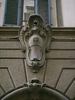 Auf der rechten Seite, im ersten Stock des Gebäudes, befindet sich ein schöner Tabernakel aus Pietra Serena mit barockem Rahmen, dessen Tympanon mit zwei Cherubinköpfen verziert ist, und einem Kragstein, der von einer kunstvollen Kartusche begrenzt wird. In der kurzen, fast quadratischen Nische befindet sich die Kopie eines Marmorreliefs von Desiderio da Settignano, das die Madonna mit Kind darstellt: Das Original befindet sich seit 1921 im Nationalmuseum des Bargello. Die originalgetreue Zwei-Drittel-Figur ist sehr plastisch modelliert und zeigt dem Betrachter die sitzende Jungfrau mit dem lächelnden Jesuskind auf ihrem Schoß.