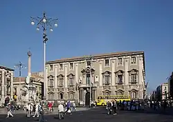 Der Palazzo Municipale von Catania wurde nach der Eruption des Ätna 1669 und dem Erdbeben 1693 von Giovanni Battista Vaccarini im Jahr 1735 neu erbaut. Das Erdgeschoss war schon begonnen, als er die Bauleitung übernahm[1] und so zeigt es die für den Frühstil Catanias charakteristische Rustifizierung.