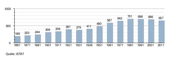 - ↑ Bilancio demografico e popolazione residente per sesso al 31 dicembre 2024. ISTAT. (Bevölkerungsstatistiken des Istituto Nazionale di Statistica, Stand 31. Dezember 2024).