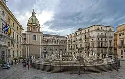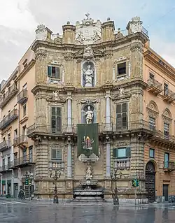 Der zentrale Platz der Altstadt ist Quattro Canti an der Kreuzung der Hauptstraßen Corso Vittorio Emanuele und Via Maqueda. Die Barockpaläste an den vier Ecken haben konkav geschwungene Fassaden annähernd gleichen Aufbaus. Sie sind geschmückt mit Brunnen und Statuen, die die vier Jahreszeiten, die spanischen Könige von Palermo und die Schutzheiligen der alten Stadtviertel darstellen.