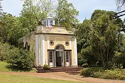In die weitläufige Parklandschaft sind symmetrisch angelegte Gärten mit opulent angelegten Rabatten eingestreut, auf denen das ganze Jahr über Ziergewächse blühen, darunter viele aus der Kapflora bekannte Arten wie Mittagsblumen, Gazanien, Fackellilien und Schmucklilien. Vor einer viktorianischen Villa, dem Wohnsitz der Eigentümerfamilie, gibt es eine Sammlung von Zuckerbüschen mit Königs-Protea (Protea cynaroides) und Nadelkissen-Protea (Leucospermum cordifolium).[5] Vor dem Teehaus (Einkehrmöglichkeit) schaut man auf zwei kleine Seerosenbecken, des Weiteren gibt es einen Rosengarten.