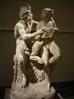 Pan (altgriechisch Πάν Pán, arkadisch Πάων Páōn, deutsch ‚Hirte‘)[1] ist der Hirtengott in der griechischen Mythologie. Seiner Gestalt nach ist er ein Mischwesen mit dem Oberkörper eines Menschen und dem Unterkörper eines Widders oder eines Ziegenbocks.