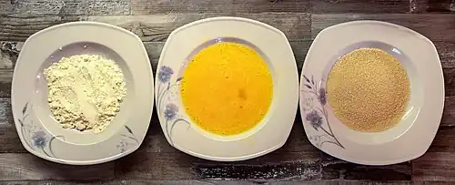 - Pariser Panade: zuerst mehlieren, dann durch geschlagenes Ei ziehen