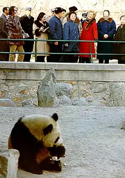 1980 erhielt auch der damalige deutsche Bundeskanzler Helmut Schmidt zwei Pandas, die er für den Zoologischen Garten Berlin entgegennahm.[6]