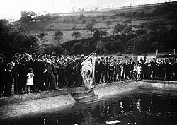Zwei Mitglieder des Stromberger Turn- und Spielvereins hatten am Welschbach im Warmsrother Grund eine Wiese angekauft und ihrem Verein gestiftet. Bis Sommer 1927 gelang es durch Fachkräfte und Vereinsmitglieder mit finanzieller Unterstützung der Stadt Stromberg ein Schwimmbad zu errichten, das aus einem Betonbecken bestand, welches mit Frischwasser des benachbarten Welschbachs gespeist wurde. Im Rahmen eines Bezirksturnfestes übergab der Verein am 4. Juni 1927 das Schwimmbad seiner Bestimmung.[5] Durch Zunahme der Gäste des in der Nähe gelegenen Kurhauses erwies sich die Anlage schon bald als zu klein. Pfingsten 1938 entstand in der Nähe des Schwimmbades ein Lager der Hitlerjugend mit einer Belegzahl von ca. 1200 Jungen, wetterbedingt fanden jedoch die geplanten Schwimmwettkämpfe nicht statt.[6]