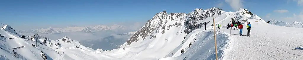 Links: Panorama Bahn, rechts der Mitte: Hochjoch