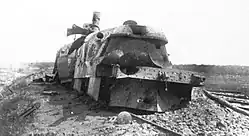 Am 2. September 1915 wurde der Panzerzug dem 1. Transamur-Eisenbahnbataillon zugeteilt. Ab dem 9. September wurde er an die Front zur Eisenbahnlinie zwischen Sarny und Kowel geschickt und fuhr dort Patrouillen. Am 24. September unterstützte er den Angriff des 408. Regiments der 102. Infanteriedivision auf österreich-ungarische Stellungen in der Nähe des Bahnhofs Rudochka auf der Eisenbahnlinie zwischen Riwne und Kowel. Der Angriff verlief erfolgreich und der Gegner musste zwei seiner Schützengräben aufgeben. Im weiteren Verlauf des Angriffs durchbrach der führende Abstoßwagen eine Sperre aus Stacheldraht und entgleiste dabei auf Höhe der zweiten Grabenlinie. Der Besatzung gelang es, den Wagen abzukoppeln und den Zug nach hinten ausweichen zu lassen. Zeitgleich setzte jedoch Artilleriefeuer der schweren österreichischen Artillerie ein, welches die Gleise hinter dem Panzerzug zerstörte. Dieser konnte nicht mehr rechtzeitig anhalten und entgleiste. Daraufhin nahm die Artillerie den Panzerzug unter Beschuss. Dabei wurde der hintere Abstoßwagen getroffen und vom Panzerzug weggeschleudert. Weitere Treffer durchschlugen den Kessel der Panzerlokomotive und die Besatzung musste den Panzerzug aufgeben. Die Besatzung des vorderen Artilleriewagens, welche das Feuern nicht aufgab, wurde durch weitere Treffer der Artillerie getötet.[1][2]