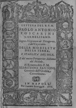 - Lettera sopra l’Opinione de’Pittagorici, e del Copernico della Mobilità della Terra, e Stabilità del Sole, e del Nuove Pittagorica Systema del Mondo, Neapel 1615