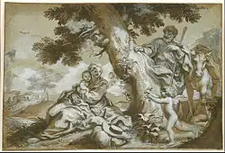 - Fresken mit Mythos der Diana (ca. 1688–89) in der Loggia des Palazzo Rosso, Genua