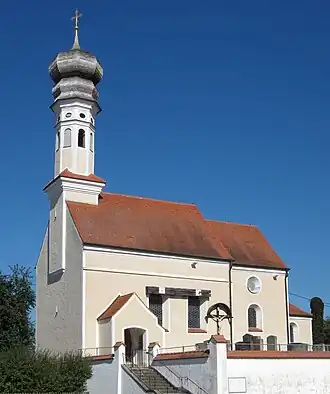 In der Liste der Baudenkmäler in Bockhorn wird die römisch-katholische Filialkirche Heilig Kreuz erwähnt. Die barocke Saalkirche mit eingezogenem geraden Chor und Zwiebelturm von Hans Kogler aus dem Jahr 1692.