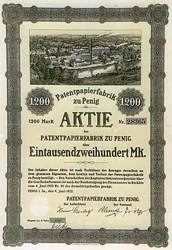 - ↑ Uwe Lemke: Zeitreise in die Peniger Papiergeschichte. In: Freie Presse. 1. August 2019, S. 11.