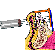 Rot: Filmhalter, blau: Röntgenzahnfilm