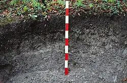 - Ah: Der Oberbodenhorizont (A) ist humos (h). Er besitzt eine Mächtigkeit von mindestens 2 cm und maximal 40 cm. Unter landwirtschaftlicher Nutzung kann auch die Bezeichnung Ap (p = gepflügt) vorkommen.