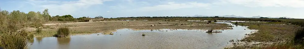 Bei s’Albufera, dessen Name von dem arabischen Wort für Lagune „al-buhayra“ hergeleitet wird, handelt es sich um das Feuchtgebiet eines verlandeten Sees, der durch Dünen vom Meer an der Badia d' Alcúdia („Bucht von Alcúdia“) getrennt war. Sedimentansammlungen führten zur Ansiedlung von Sumpfpflanzen auf dem immer flacher werdenden Seegrund. Als Beginn der Bildung des Feuchtgebietes wird eine Zwischeneiszeit vor etwa 100.000 Jahren angenommen, als durch die Entstehung einer Küstenbank der See vom östlich liegenden Meer abgeteilt wurde.[2] In Zeiten höchster Wasserstände der letzten 10.000 Jahre reichte s’Albufera im Norden bis nahe dem Ort des antiken Theaters von Pol·lèntia. Noch zur Zeit der Zugehörigkeit Mallorcas zum Römischen Reich lag der Wasserspiegel etwa zwei bis drei Meter höher und auf dem Gebiet des heutigen Sumpflandes bestanden mehrere durch Kanäle miteinander verbundene Seen.[4]