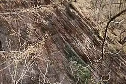 Im Zuge der Gebirgsbildung wurden die Gesteinsschichten in diesem Gebiet nach Südwesten geneigt.[5]:188