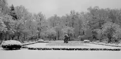 - Der Fürst-Poniatowski-Park liegt zwischen den Straßen Parkowa, Mickiewicza, Włókniarzy und Żeromskiego und hat eine Fläche von etwa 41,2 Hektar. Angelegt wurde der Park 1904 bis 1910 als Ogrodu przy ul. Pańskiej (Garten bei der Pańskiejstraße, heute die Żeromskiego). Im Juli 1912 erließ der Stadtpräsident Łódźs eine Verfügung, die den Zutritt zum Park nur noch Offizieren, Beamten oder Personen mit einer Sondererlaubnis des Stadtpräsidenten erlaubt.[1] 1917 erhielt der Park seinen heutigen Namen. In den 1920er Jahren war die Villa im Park Sitz des Stadtpräsidenten. 1938 wurde ein Denkmal für Stanisław Moniuszko im Park errichtet, allerdings wurde dieses bereits ein Jahr später beim Einmarsch der Wehrmacht zerstört. Nach Ende des Weltkrieges wurden zwei Soldatenfriedhöfe der Roten Armee und der polnischen Kämpfer im Park angelegt. 1955 wurde ein Konzertplatz angelegt.