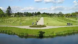 - Im Park steht ein vernachlässigtes Denkmal zum Gedenken an die Widerstandsgruppe Promieniści, die während der Besetzung im Zweiten Weltkrieg gegen die Nationalsozialisten gekämpften hatten. Die nur noch schwer lesbare Inschrift lautet: hołdzie bohaterskim bojownikom łódzkiej organizacji młodzieżowej, w dwudziestą rocznicę walk z hitlerowskim okupantem, park ten zostaje nazwany imieniem Promienistych. Harcerze Chorągwi Łódzkiej 1963 r. (dt.: In Erinnerung an die heldenhaften Kämpfer der Łódźer Jugendgruppe in zwanzig Kämpfen mit den Besetzern Hitlers erhält der Park den Namen Promieniści. Die Łódźer Pfadfinder 1963).