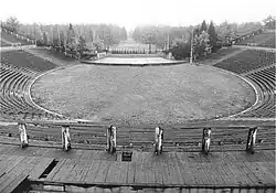 Teile des Volksparks Wuhlheide wurden etwa ab 1950, sowjetischen Vorbildern folgend, in den Pionierpark Ernst Thälmann umgestaltet. Anlässlich der 3. Weltfestspiele der Jugend im Sommer 1951 (Eröffnungsfeier am 27. Juli 1951 unter Oberbürgermeister Friedrich Ebert) wurde die Große Freilichtbühne errichtet. Sie entstand auf Wällen von Trümmerschutt, auf denen zur Innenseite terrassenförmig oval geführte Sitzreihen für etwa 20.000 Besucher angelegt wurden. Um den Oberring des Walls von außen zu erreichen und zu den Sitzplätzen auf der Innenseite zu gelangen, entstanden umfangreiche Freitreppenanlagen. Notwendige Toiletten- und Nebengebäude wurden an der Rückseite des Walles entsprechend den damaligen Hygieneanforderungen und Erkenntnissen errichtet. In den Folgejahren fand hier eine Vielzahl kultureller und politischer Veranstaltungen statt.