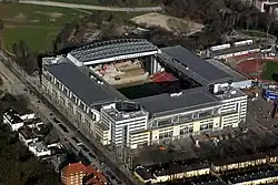 Das Stadion aus der Luft während des Umbaus der D-Tribüne