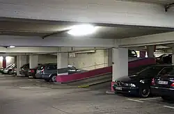 Ein Parkhaus ist ein meist mehrstöckiges Gebäude, in dem sich Stellplätze für Pkw oder Motorräder und seltener für Lkw oder Fahrräder befinden. Parkhäuser werden meistens in größeren Städten gebaut, um den knappen innerstädtischen Raum besser auszunutzen und den Straßenraum von geparkten Autos (sogenanntem ruhendem Verkehr) zu entlasten. Ein Stockwerk eines Parkhauses wird als Parkdeck bezeichnet.[1] Eine Hochgarage ist eine über Rampen erreichbare, nicht zu ebener Erde liegende Garage[2], eine Tiefgarage ist eine Garage unterhalb der Erdoberfläche.