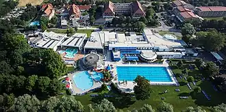 1963 eröffnete das heutige 50-m-Sportbecken, damals bekannt als Parkbad und 1965 wurde ein Kurmittelhaus eröffnet und damit die ärztliche Betreuung erweitert und mit diversen Sporteinrichtungen ergänzt. Seit 1978[3] führt die Stadt die Bezeichnung Bad Radkersburg.[4]
