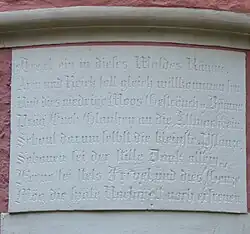 Fälschlicherweise wird mit dem Schild am Tor ein Herr Emil Ritterhans als Verfasser dieses Gedichts genannt. Gemeint war der Heimatdichter Herr Emil Rittershaus aus Barmen. Das Gedicht stammt aber aus der Feder des Herrn Schaberg-Frölich. Er widmete 1868 dem Barmer Verschönerungsverein dieses Gedicht.[2]