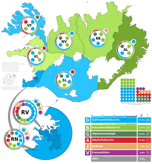 - ↑ a b Ergebnisse Parlamentswahlen ( des vom 13. November 2012 im Internet Archive) Info: Der Archivlink wurde automatisch eingesetzt und noch nicht geprüft. Bitte prüfe Original- und Archivlink gemäß Anleitung und entferne dann diesen Hinweis. statice.is (englisch)