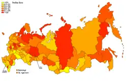 | Oblast Smolensk | 49,6 % | 36,2 % | 24,2 % | 18,6 % | 14,8 % | 2,9 % | 1,1 % | 0,5 % | 1,6 % |