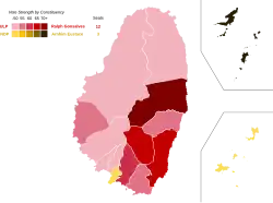 Die Parlamentswahl in St. Vincent und den Grenadinen 2001 (General elections) wurde am 28. März 2001 im karibischen Inselstaat St. Vincent und den Grenadinen abgehalten.[1] Die Unity Labour Party (ULP), welche in den Wahlen 1998 die meisten Stimmen errungen, aber trotzdem gegen die New Democratic Party (NDP) verloren hatte, errang dieses Mal einen Erdrutschsieg mit 12 der 15 Mandate. Damit endeten siebzehn Jahre der NDP-Regierung. Die NDP behielt nur drei von vorher acht Sitzen, inklusive der zwei Wahlkreise, welche seit 1966 in jeder Wahl für den früheren Parteiführer Sir James Fitz-Allen Mitchell gestimmt hatten.