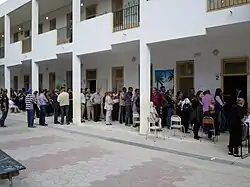 Nach Schätzungen lag die Wahlbeteiligung bei etwa 69 Prozent der registrierten Wähler oder 3,5 Millionen; 2011 hatte sie 52 Prozent der Gesamtbevölkerung betragen oder 4,3 Millionen.[19] Es gelang der säkularen Partei Nidaa Tounes, mit 38 Prozent der Stimmen (86 Sitze) vor der gemäßigt islamistischen Ennahda (28 Prozent, 69 Sitze) stärkste Kraft zu werden. Die Freie Patriotische Union kam auf 16, die Volksfront auf 15 Sitze. Die bis 2013 mit Ennahda regierenden säkularen Parteien verloren massiv: Der CPR kommt nur noch auf vier Sitze, Ettakatol ist gar nicht mehr im Parlament vertreten.[24] Ennahda dominierte im armen Süden des Landes, während die Partei Nidaa Tounes ihre Hochburg an der Ostküste hatte, woher viele der alten Eliten stammten.[15] Offenbar beteiligten sich besonders wenige Jungwähler, was mit der Enttäuschung über die Vagheit der Parteien bei Problemlösungen und Zukunftsentwürfen erklärt wird.[19]